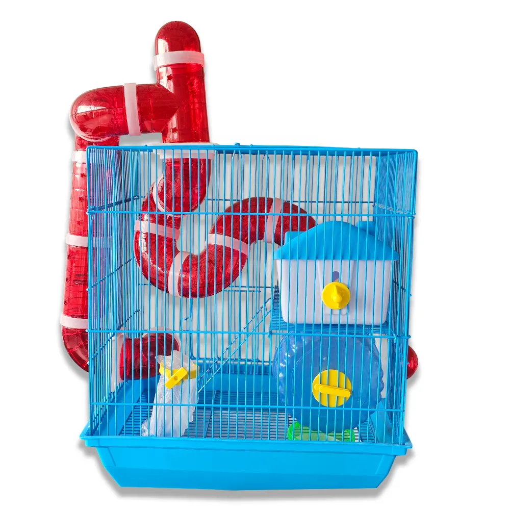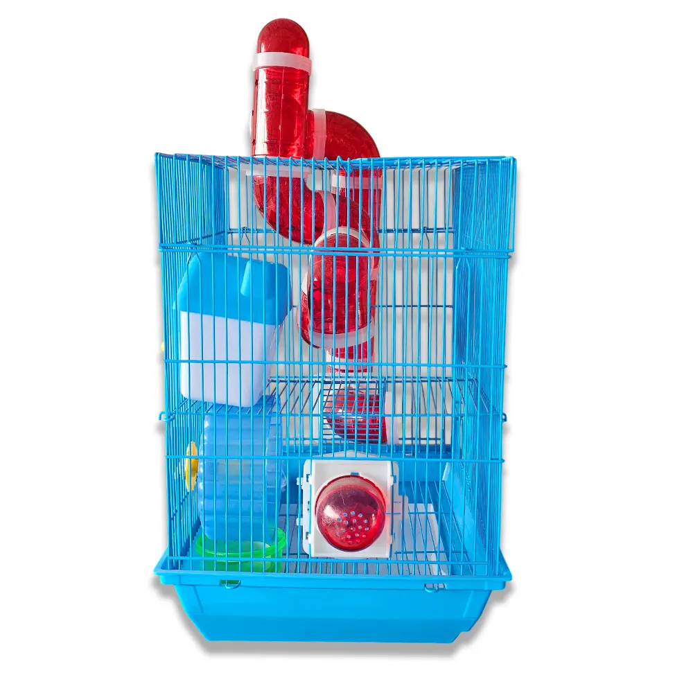 El Accesorio jaula para pequeños roedores es una opción práctica y completa para hámsters y roedores pequeños. Cuenta con un diseño de 2 pisos, escaleras, comedero, bebedero, rueda de ejercicio, casa y túnel, ofreciendo un entorno cómodo y estimulante. Con un tamaño de 28 × 37 × 40,5 cm, brinda el espacio ideal para el juego, el descanso y el bienestar diario de tu mascota y del alta calidad.