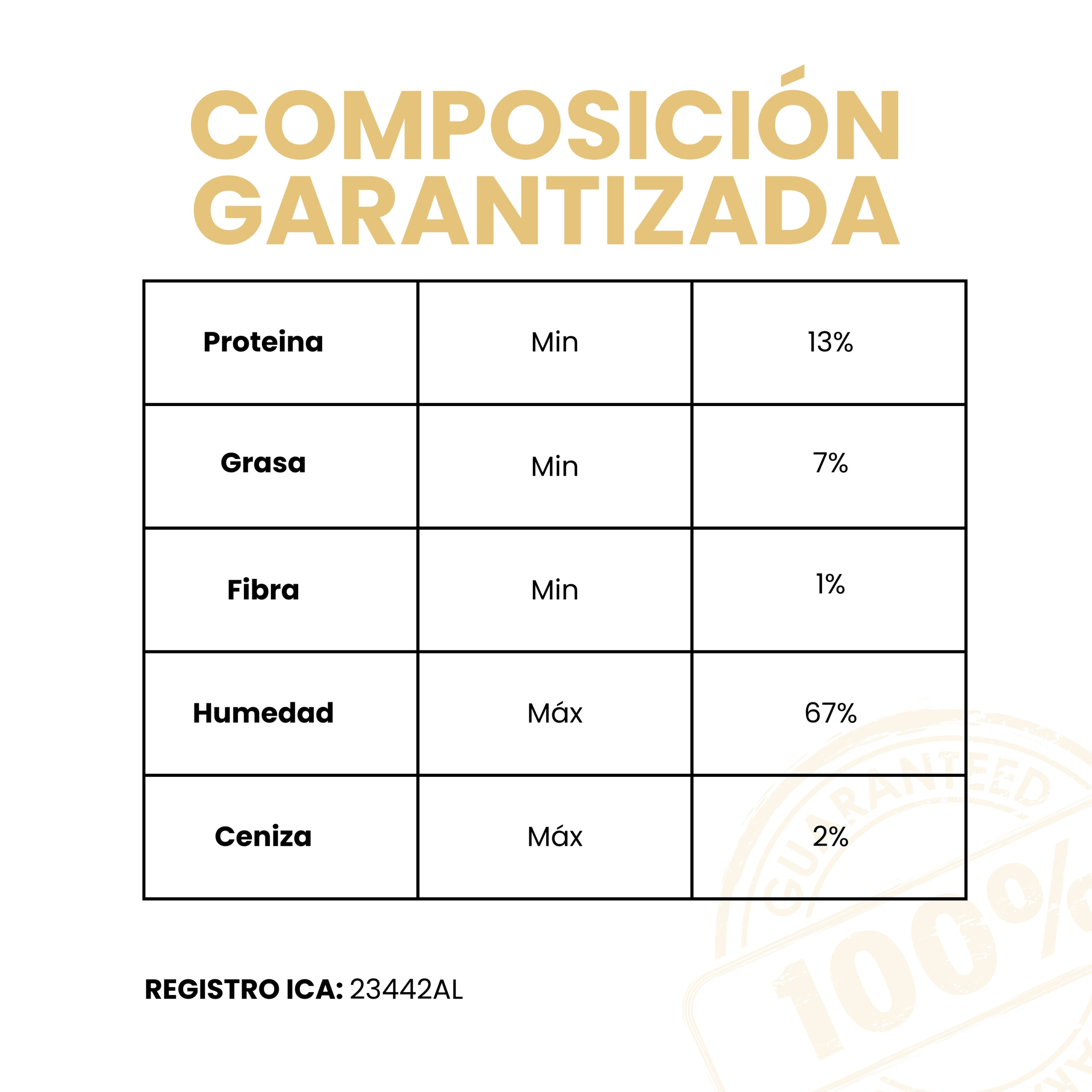 A diferencia de los alimentos ultraprocesados, este producto no contiene colorantes, conservantes ni saborizantes artificiales. Su cocción suave permite mantener intactos los nutrientes esenciales y realzar el sabor natural que tanto disfrutan los perros.