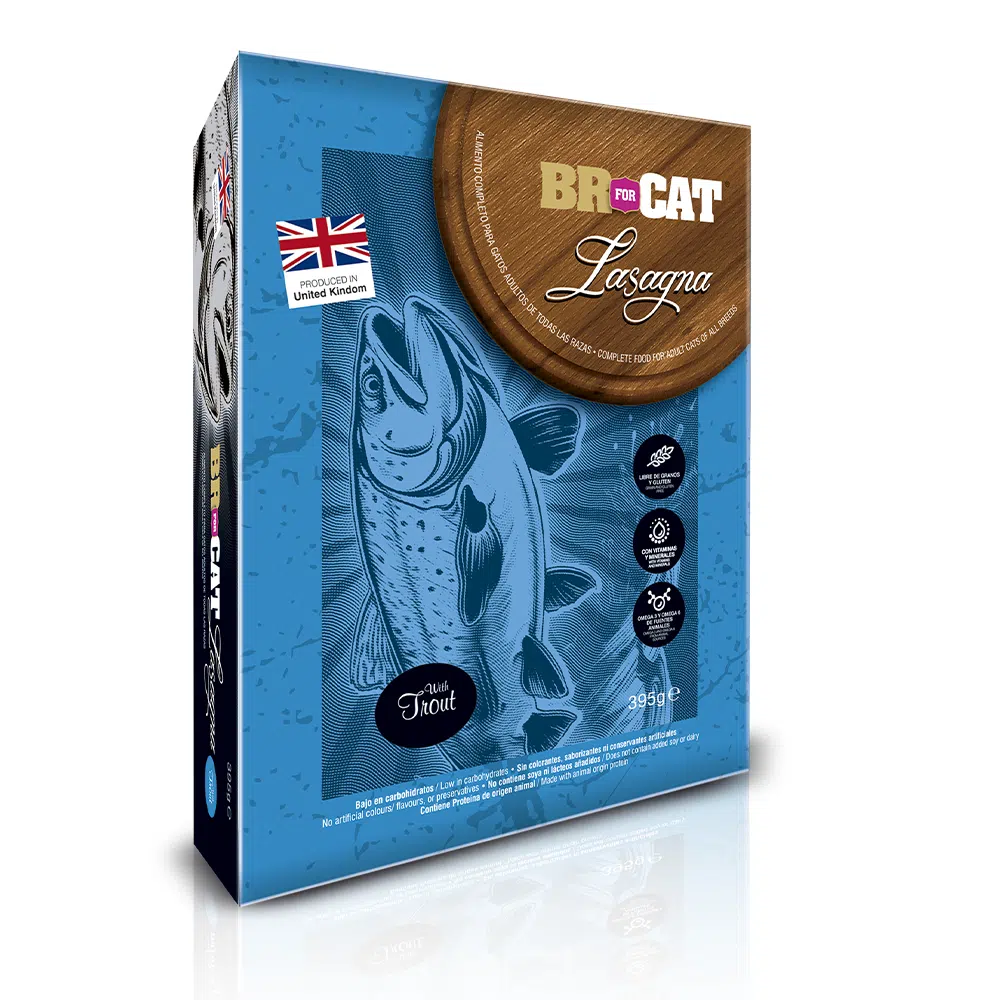 Lasagna alimento húmedo para gato con trucha es una propuesta gourmet desarrollada especialmente para gatos exigentes, sensibles y con necesidades nutricionales avanzadas. Esta fórmula combina los beneficios de la proteína de trucha con ingredientes naturales, proporcionando una dieta balanceada y apetitosa que cuida la salud digestiva, renal y del pelaje de tu felino.