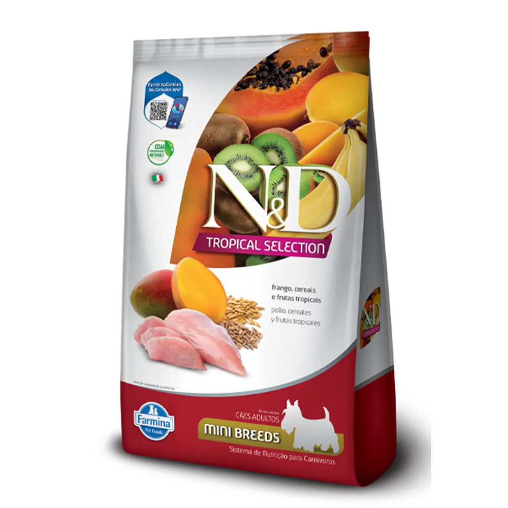 El alimento natural para perro minis pollo NyD Tropical de Farmina ha sido formulado para brindar una nutrición equilibrada, natural y altamente digestible a los perros de razas pequeñas.