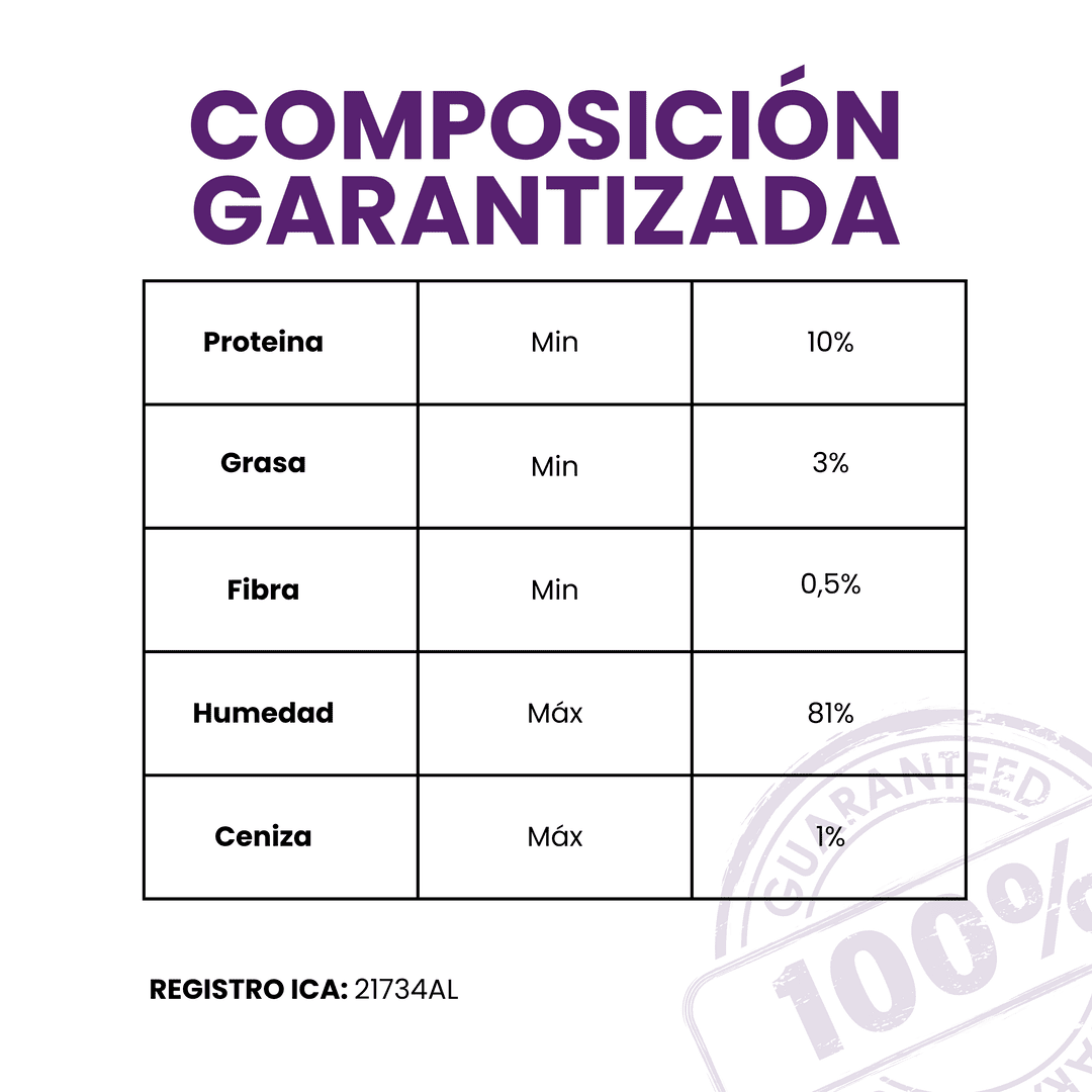 Cada porción contiene proteínas animales de alta calidad, vegetales frescos y un balance óptimo de vitaminas y minerales. Gracias a su presentación de 500 gramos, puedes dosificar las raciones con facilidad y conservar su frescura por más tiempo.