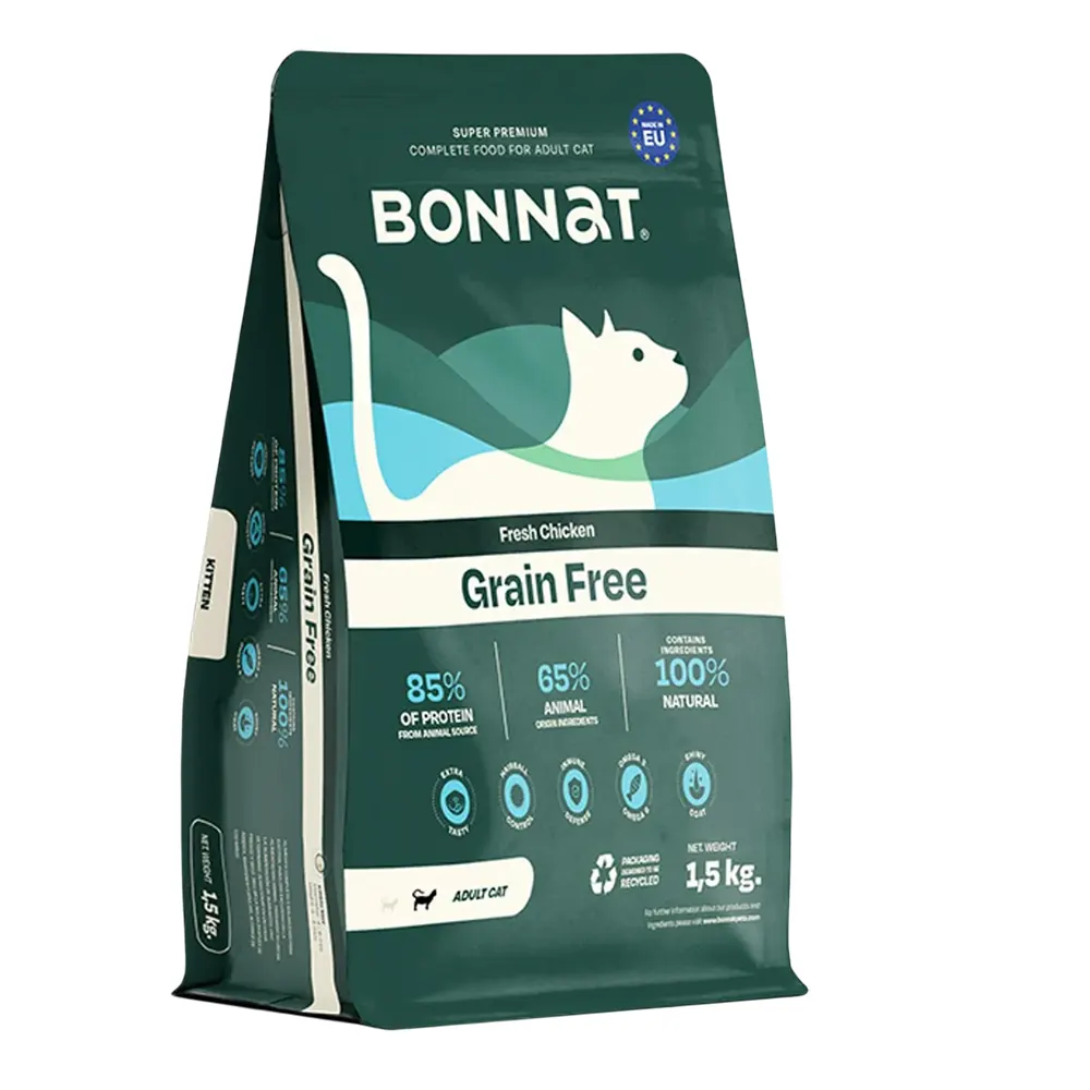 El alimento para gato adulto Bonnat ha sido elaborado por especialistas en nutrición animal, cuidando cada detalle en su composición para garantizar un producto confiable y completo.