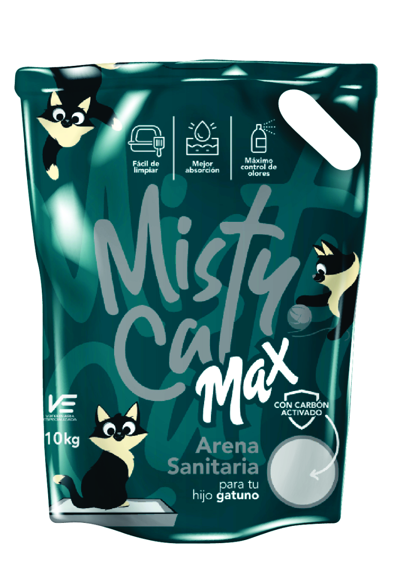 Arena sanitaria de bentonita, de textura granulada. Sin fragancia. . 99% libre de polvo. Adicionada con carbón activado, controla y elimina olores de manera eficaz y duradera
