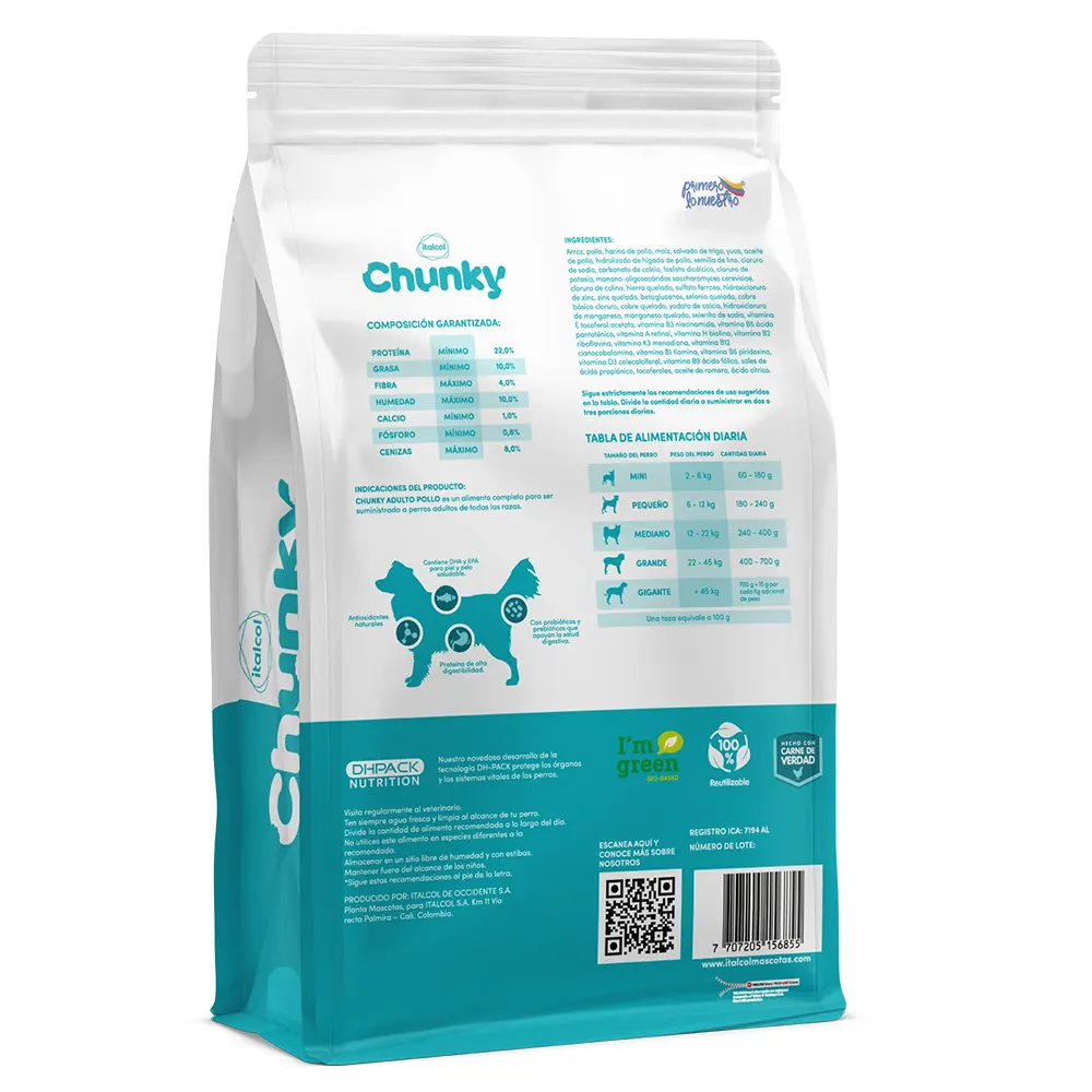 El Alimento para perro cachorro todas las razas Chunky pollo destaca por su alta palatabilidad, lo que facilita la aceptación incluso en cachorros con apetito selectivo. Además, su composición balanceada ayuda a mantener una digestión saludable, favoreciendo una adecuada absorción de nutrientes y apoyando el bienestar general del cachorro día tras día.
