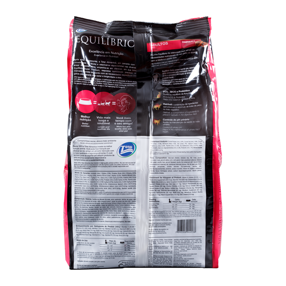 Carne mecánicamente separada de pollo, Arroz medio grano, Harina de Pescado, Harina de menudos de pollo, Maíz integral molido**, Afrecho de gluten de maíz 60**, Celulose en polvo, Levadura seca de cervecería, Hígado de pollo, Semilla de linaza, Grasa de pollo (preservada con tocoferol y esencia de romero), Hidrolizado de pollo y/o subproductos, Aceite de pescado refinado, Pulpa de remolacha, Inulina, Fosfato dicálcico, Cloruro de colina, DL-metionina, Taurina , Cloruro de Sodio (sal común), Manano-oligosacáridos, Probiótico, Bisulfato de sodio, Aceite mineral, Psyllium , Cloruro de potasio, Extracto de Yucca schidigera, Hexametafosfato de Sodio, Suplemento vitamínico, Suplemento micromineral transquelatado.