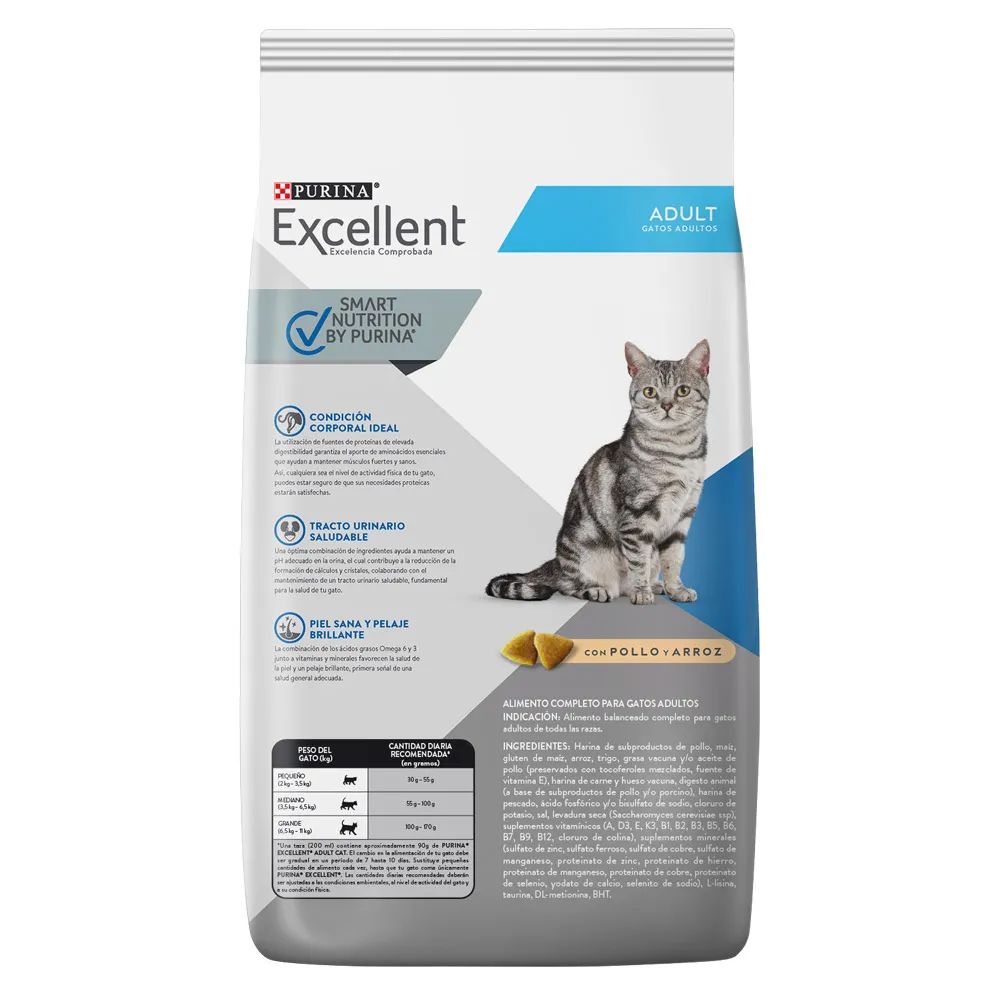 Harina de subproductos de pollo, maíz, gluten de maíz, arroz, trigo, grasa vacuna y/o aceite de pollo (preservados con tocoferoles mezclados, fuente de vitamina e), harina de carne y hueso vacuna, digesto animal (a base de subproductos de pollo y/o porcino), harina de pescado, ácido fosfórico y/o bisulfato de sodio, cloruro de potasio, sal, levadura seca (saccharomyces cerevisiae ssp), suplementos vitamínicos (a, d3, e, k3, b1, b2, b3, b5, b6, b7, b9, b12, cloruro de colina), suplementos minerales (sulfato de zinc, sulfato ferroso, sulfato de cobre, sulfato de manganeso, proteinato de zinc, proteinato de hierro, proteinato de manganeso, proteinato de cobre, proteinato de selenio, yodato de calcio, selenito de sodio), l-lisina, taurina, dl-metionina, bht.