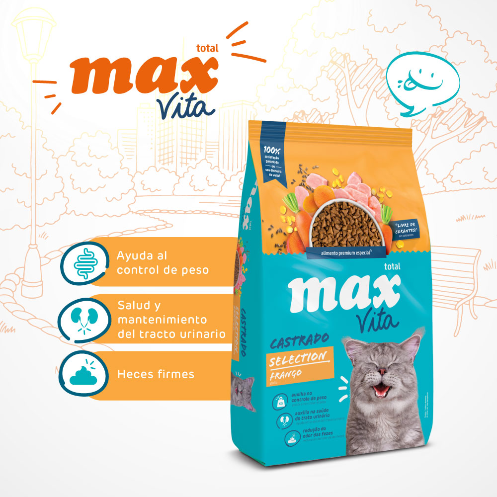 Composición básica: Harina de vísceras de ave (2%), Maíz integral molido**, Maíz germen desgrasado**, Salvado de gluten de maíz**, Arroz partido, Salvado de soja*, Grasa de pollo, Aceite de pescado refinado, Harina de pescado, Levadura seca de cervecería, Espinaca deshidratada, Zanahoria deshidratada, linaza integral molida, fosfato bicálcico, cloruro de sodio (sal común), cloruro de potasio, taurina, DL-metionina, extracto de yuca (0,025%), bisulfato de sodio (0,6%), cloruro de colina, propionato de calcio, aditivo prebiótico (0,3%)Vitamina B12, vitamina D3, vitamina E, selenita de sodio, ácido fólico, ácido pantoténico, sulfato de cobre, sulfato de hierro, yodato de calcio, monóxido de manganeso, vitamina B1, vitamina B2, vitamina B6, vitamina H, Vitamina K3, vitamina PP, óxido de zinc.