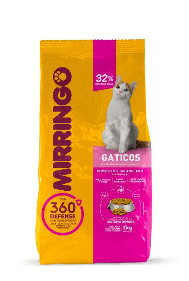 Mirringo gaticos 360 defense, es un alimento diseñado para satisfacer todos los requerimientos nutricionales para el crecimiento, mantenimiento y lactancia de los gatos. Contribuye al correcto desarrollo de todos sus órganos y sistemas como la visión, el olfato, las defensas y los procesos hormonales.