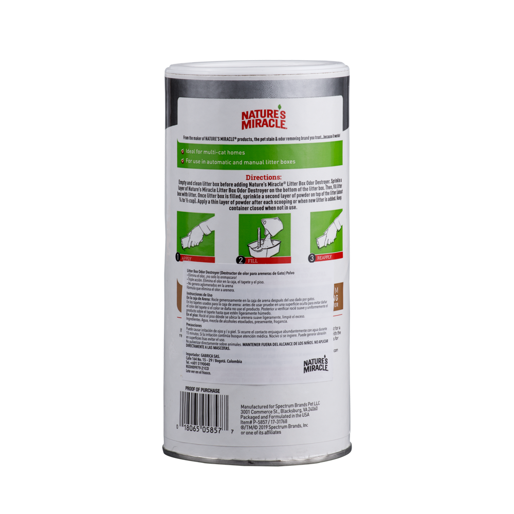 NATURE MIRACLE GATO POLVO DESTRUCTOR DE OLORES CAJA ARENA 20 OZ