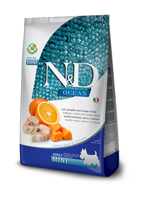 Farmina utiliza las mejores materias primas para formular alimentos sin cereales o con cantidades limitadas de cereales ancestrales. En la búsqueda constante de ingredientes saludables para nuestros amigos de cuatro patas, exploramos el mar y encontramos materias primas naturalmente ricas como el preciado Omega-3, antioxidantes naturales con múltiples propiedades. N&D Ocean, con un 94% de ingredientes de origen animal de alta calidad .
