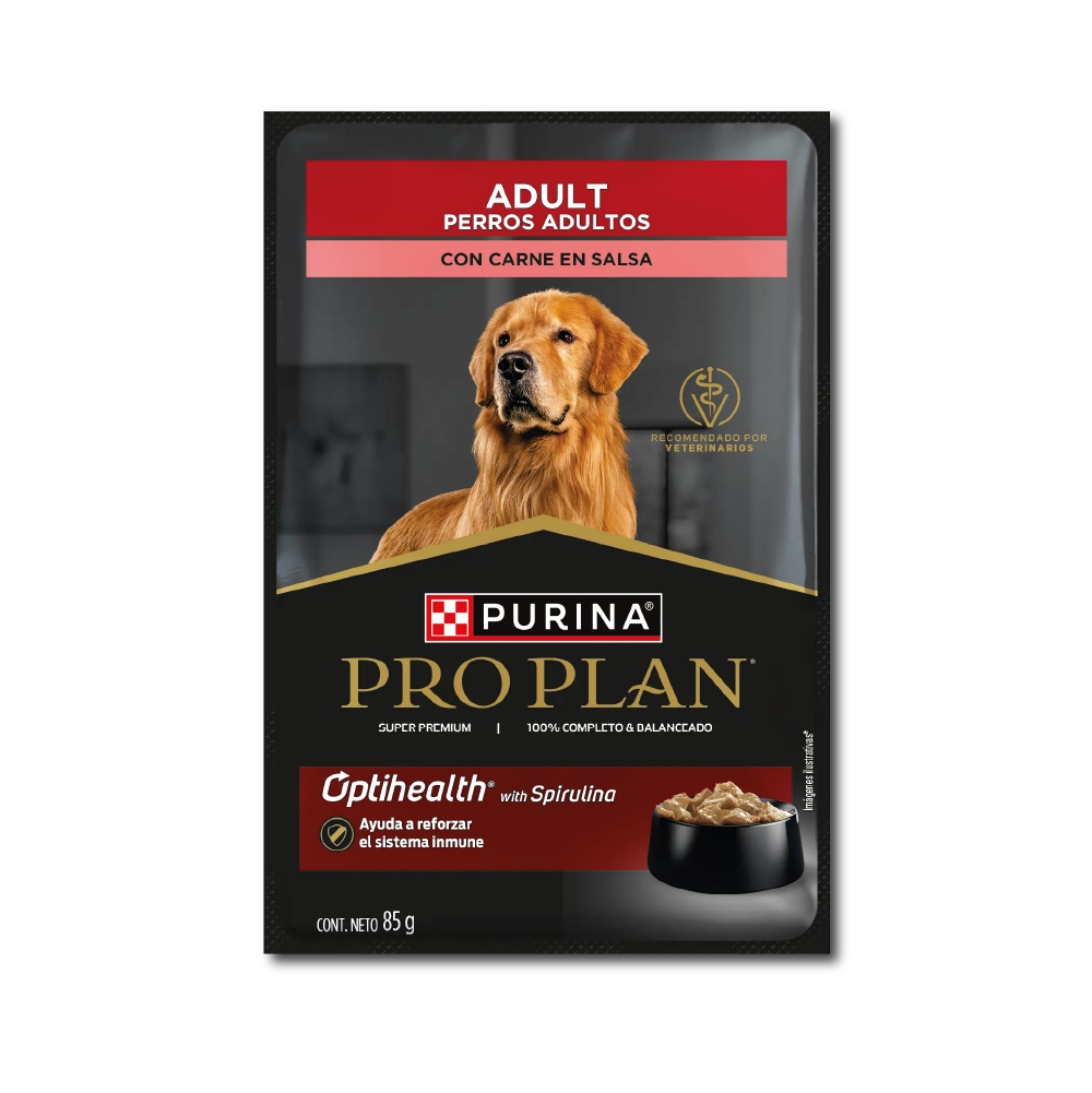 Purina pro plan – pouch adult meet, es un alimento completo húmedo para perros adultos de todas las razas.